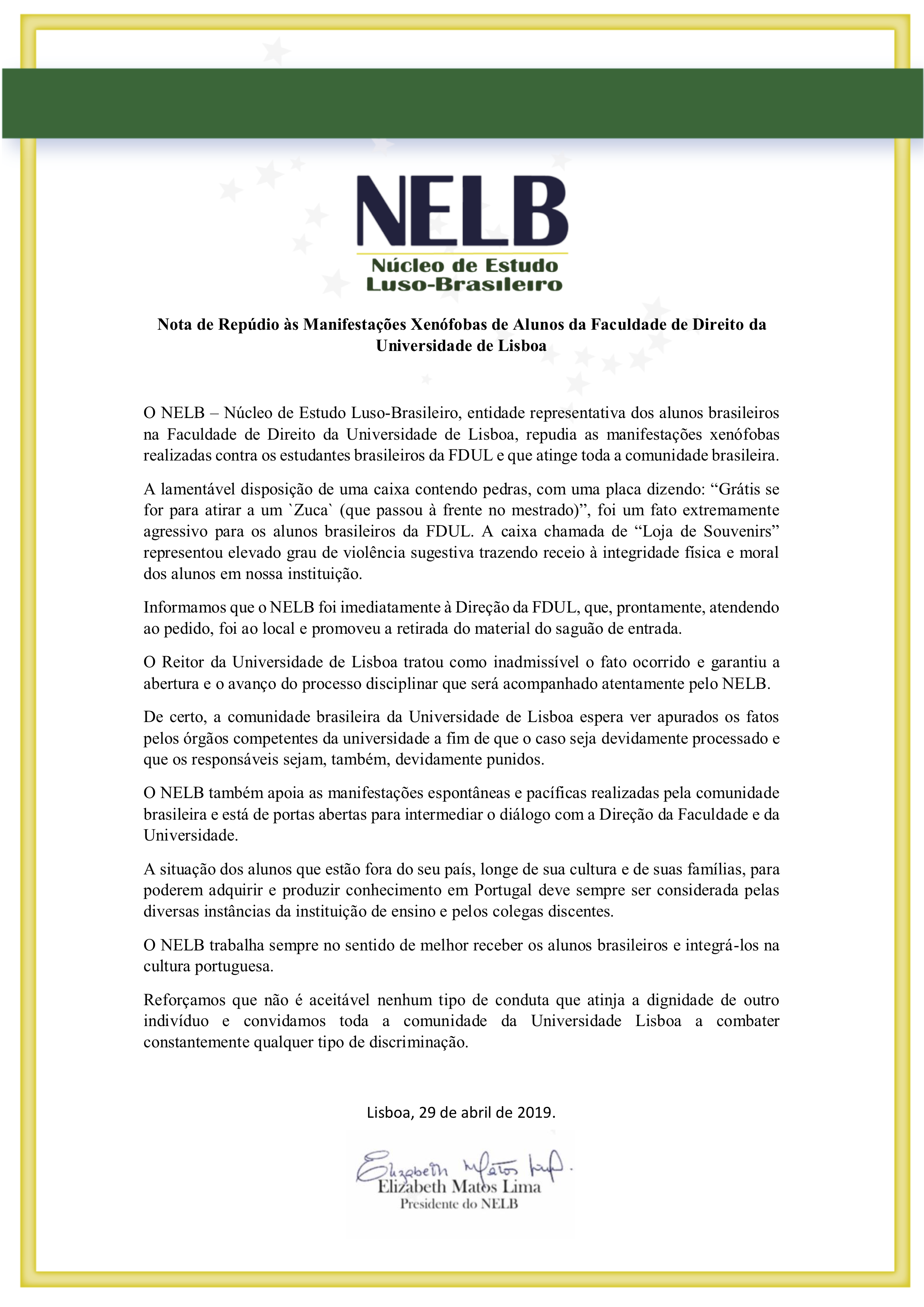 Sem categoria Nota de Repúdio às Manifestações Xenófobas Publicado por Cláudio Cardona em 29 de abril de 2019 Compartilhe isso: Clique para compartilhar no X(abre em nova janela) 18+ Clique para compartilhar no Facebook(abre em nova janela) Facebook Curtir Carregando... Relacionado