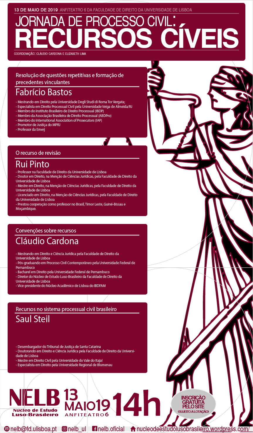 No dia 13 de maio de 2019, o NELB – Núcleo de Estudo Luso-Brasileiro realiza a Jornada de Processo Civil: Recursos Cíveis.