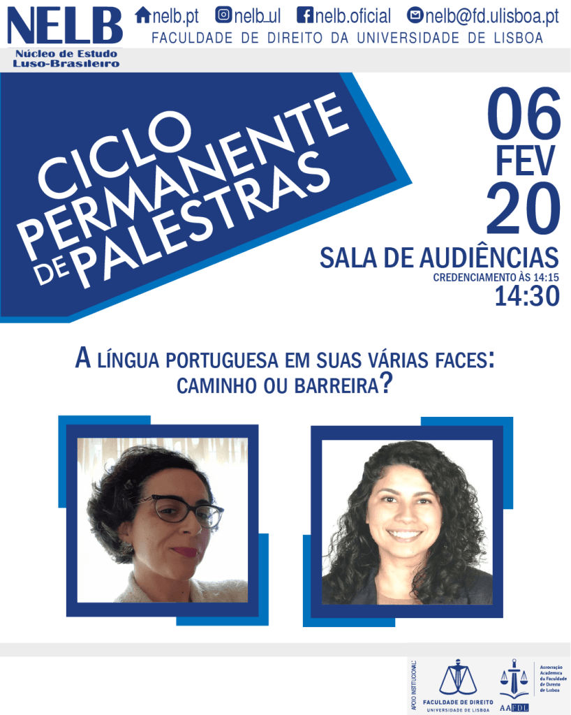 No dia 06 de fevereiro de 2020, o NELB – Núcleo de Estudo Luso-Brasileiro realiza a Conferência sobre A língua portuguesa em suas várias faces: caminho ou barreira?