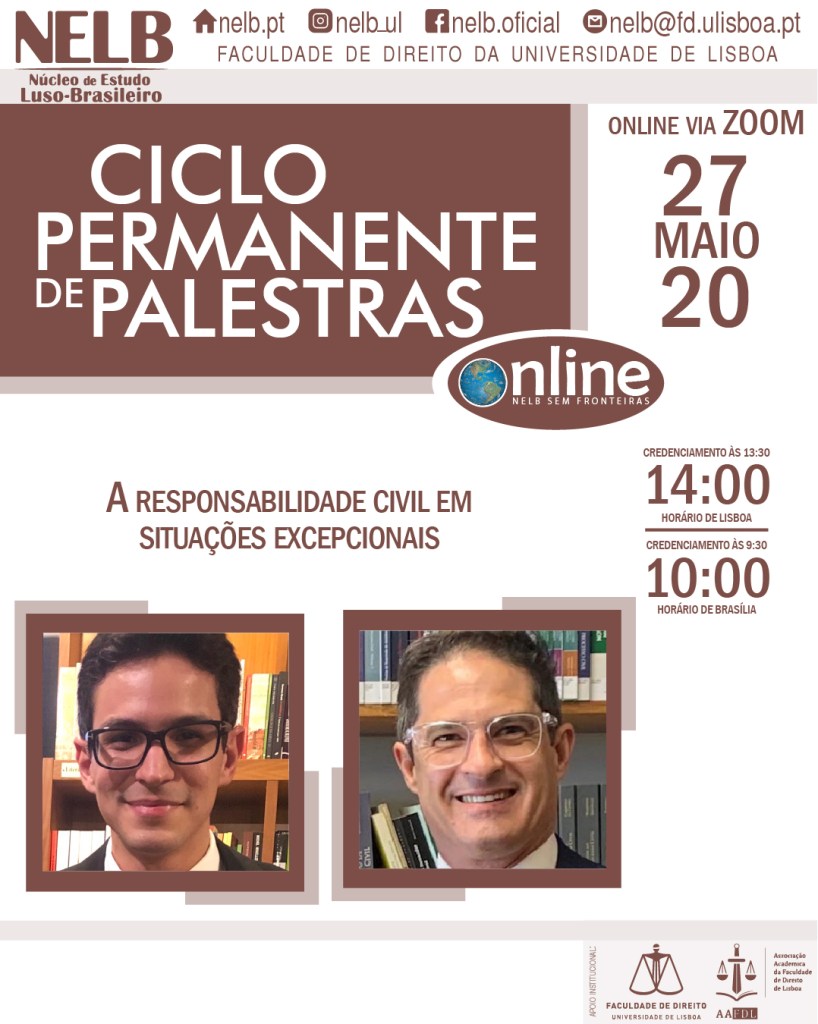 No dia 27 de maio de 2020, o NELB – Núcleo de Estudo Luso-Brasileiro realizará a Conferência sobre A responsabilidade civil em situações excepcionais.