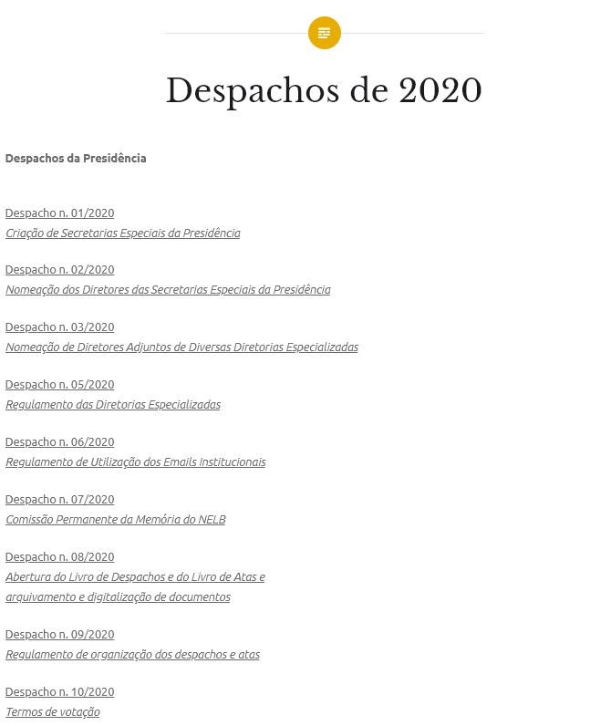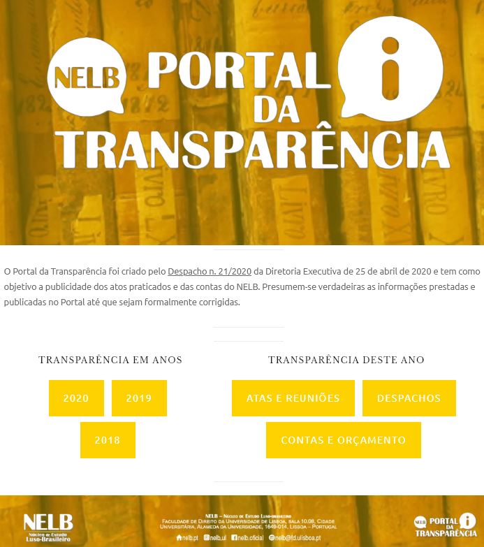 O Portal da Transparência foi criado pelo Despacho n. 21/2020 da Diretoria Executiva de 25 de abril de 2020 e tem como objetivo a publicidade dos atos praticados e das contas do NELB. O Portal foi lançado naquela oportunidade, já tendo cumprido seu objetivo pelos últimos quarenta dias.