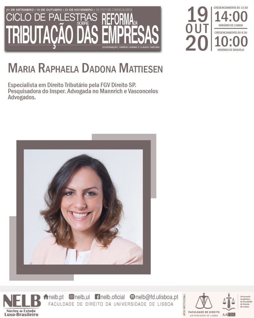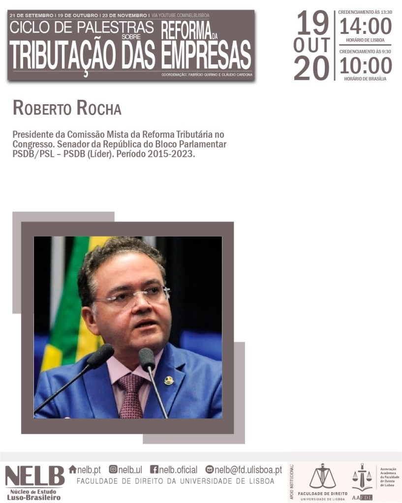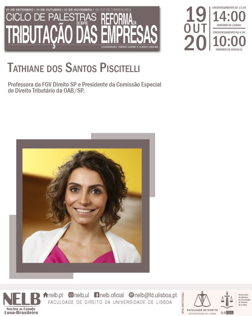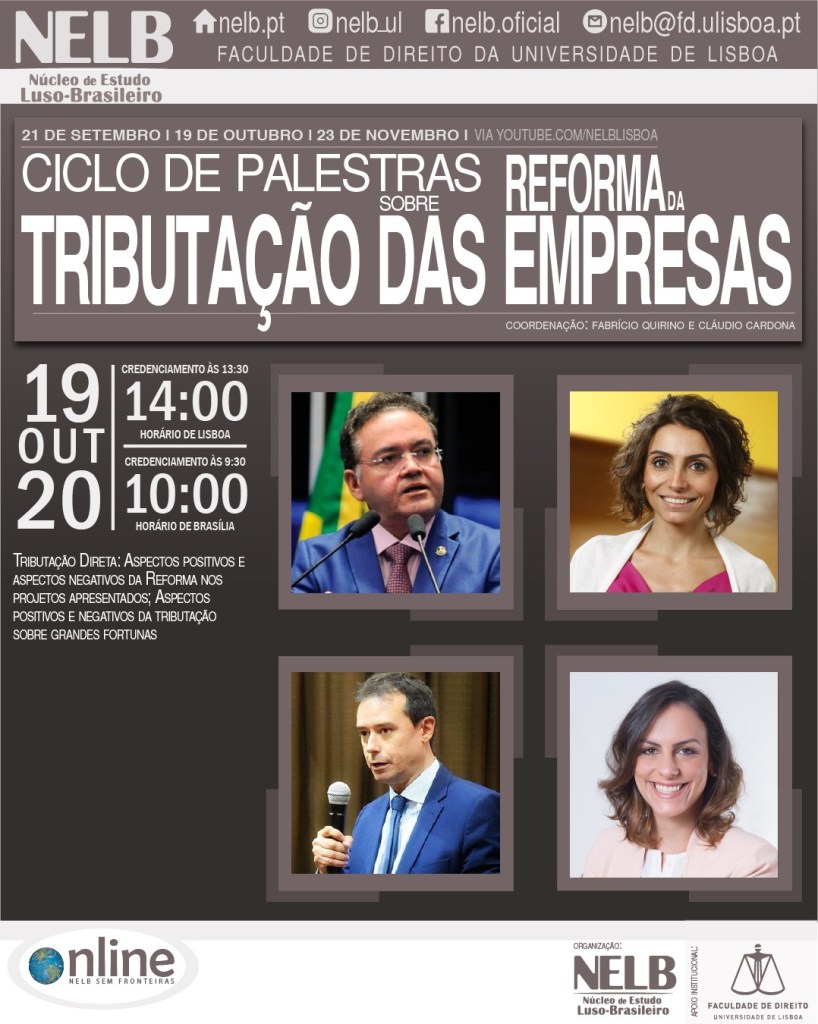 No dia 19 de outubro de 2020, o NELB – Núcleo de Estudo Luso-Brasileiro realizará a segunda de três edições do Ciclo de Palestras sobre a Reforma da Tributação das Empresas.