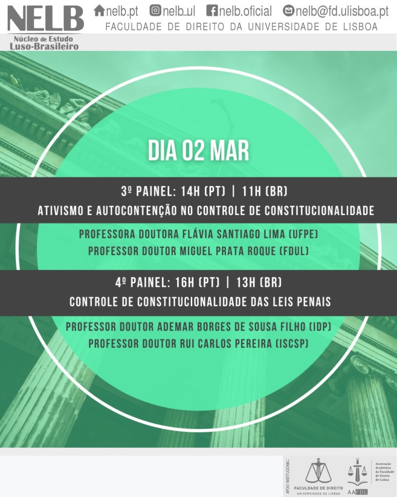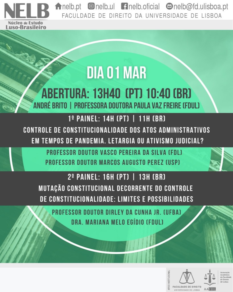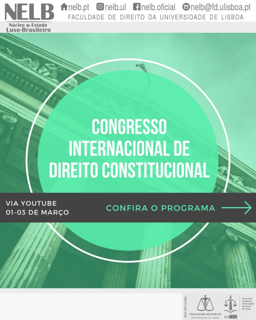Nos dias 1, 2 e 3 de março de 2021, ocorrerá o Congresso Internacional de Direito Constitucional organizado pelo NELB – Núcleo de Estudo Luso-Brasileiro.