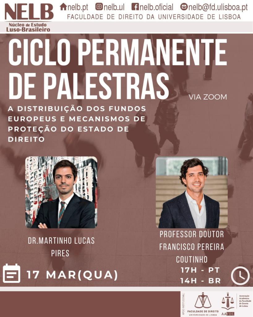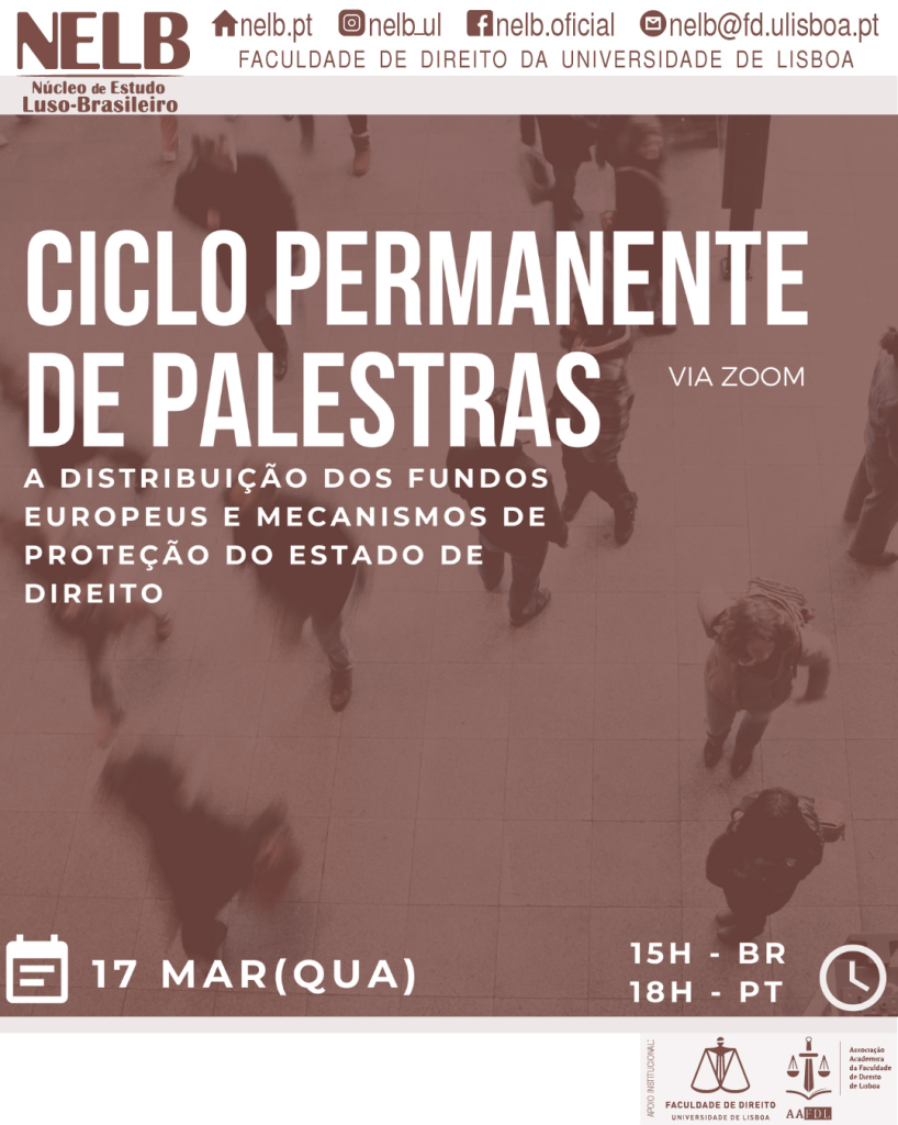 No dia 17 de março de 2021, o NELB – Núcleo de Estudo Luso-Brasileiro realizará o evento “A Distribuição dos Fundos Europeus e Mecanismos de Proteção do Estado de Direito”.