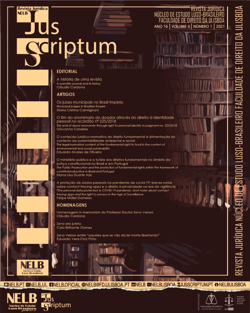 O Núcleo de Estudo Luso-Brasileiro da Faculdade de Direito da Universidade de Lisboa publica a mais nova edição da sua Revista Jurídica: Jus Scriptum, ano 16, volume 6, número 1, abr-jun 2021.
