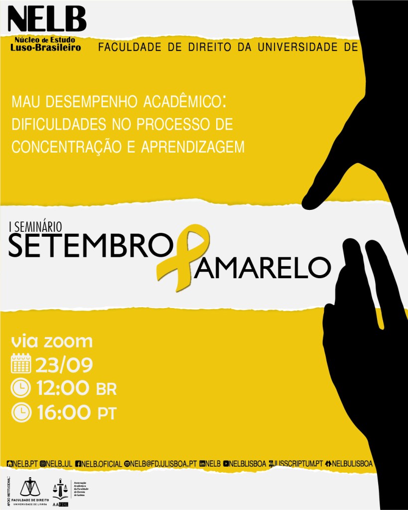 No dia 23 de setembro de 2021, o NELB – Núcleo de Estudo Luso-Brasileiro realizará o I Seminário da Conscientização: Setembro Amarelo