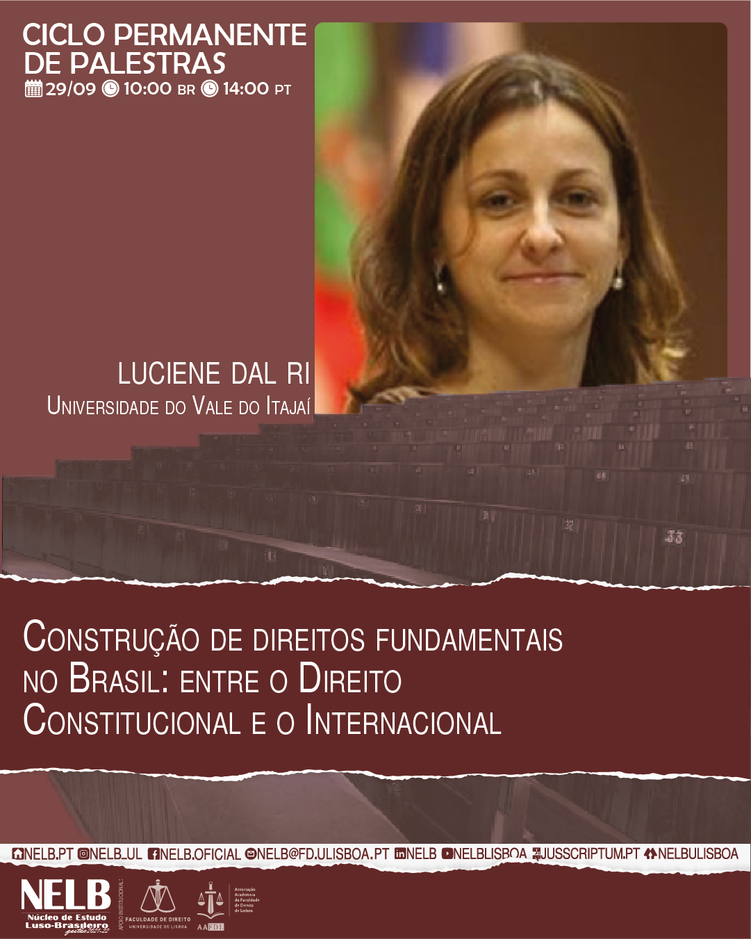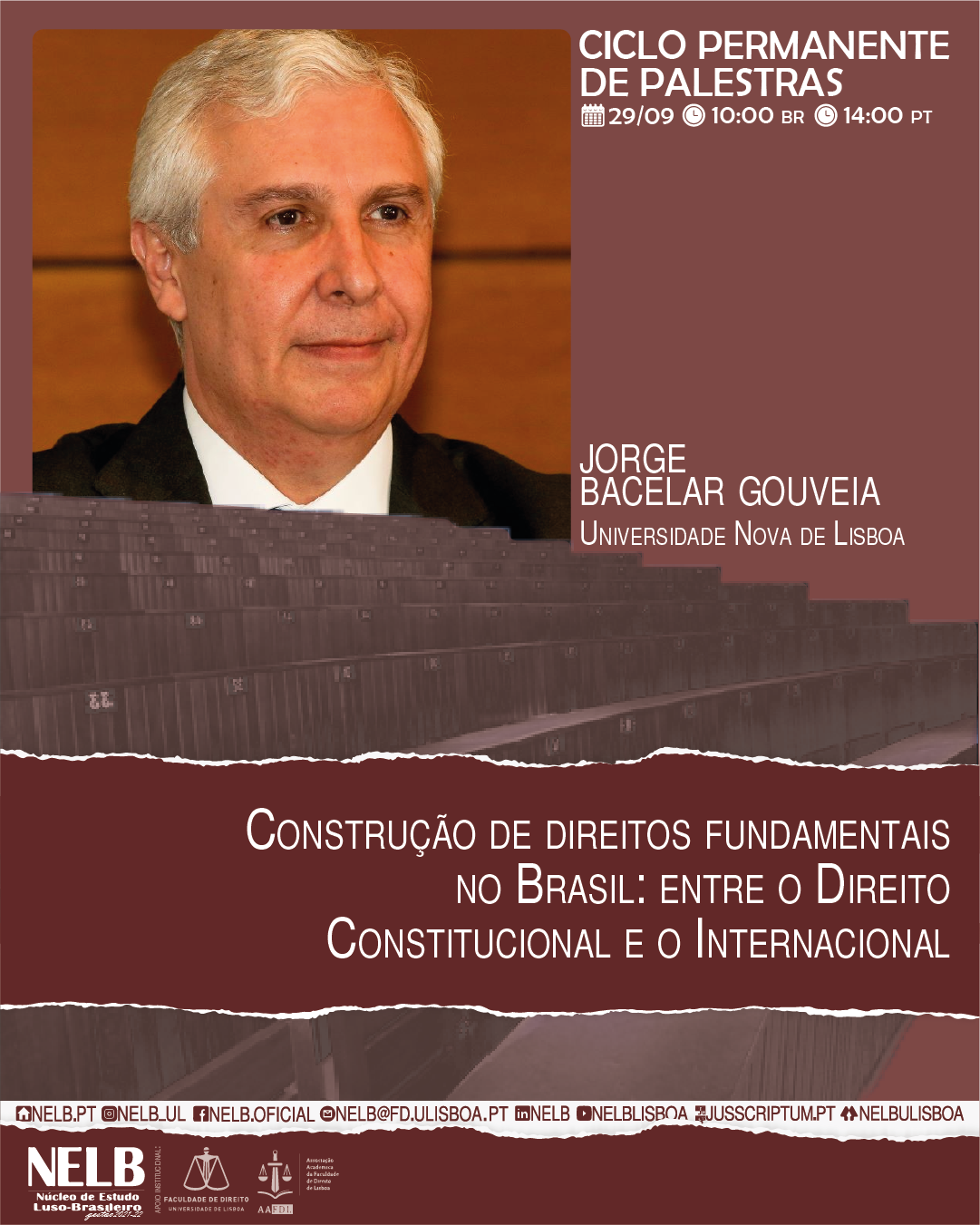 No dia 29 de setembro de 2021, o NELB – Núcleo de Estudo Luso-Brasileiro realizará o evento “Construção de direitos fundamentais no Brasil: entre o Direito Constitucional e o Internacional “