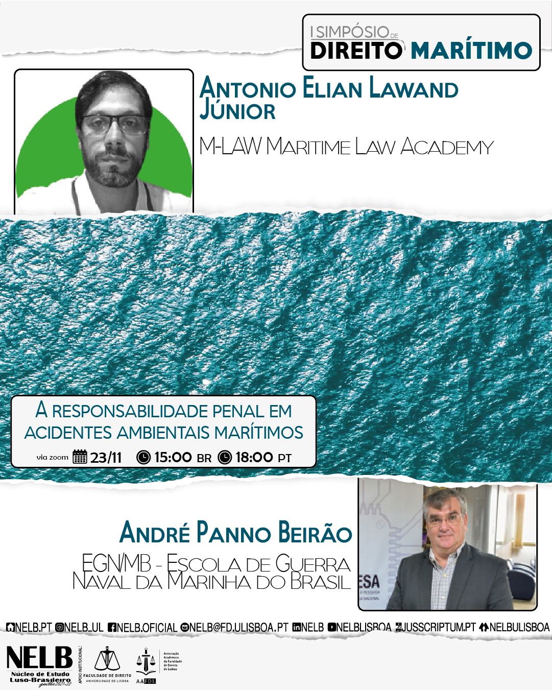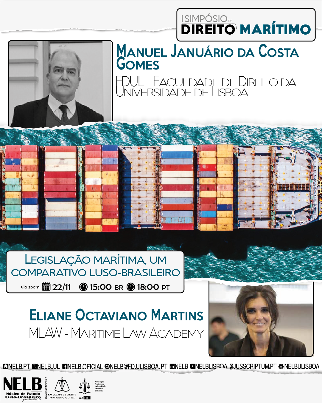 Nos dias 22 e 23 de novembro de 2021, o NELB – Núcleo de Estudo Luso-Brasileiro realiza o I Simpósio de Direito Marítimo que abordará temas relevantes quanto à legislação marítima, os vértices da geopolítica, bem como a função da responsabilização penal dos acidentes ambientais ocorridos em alto mar.