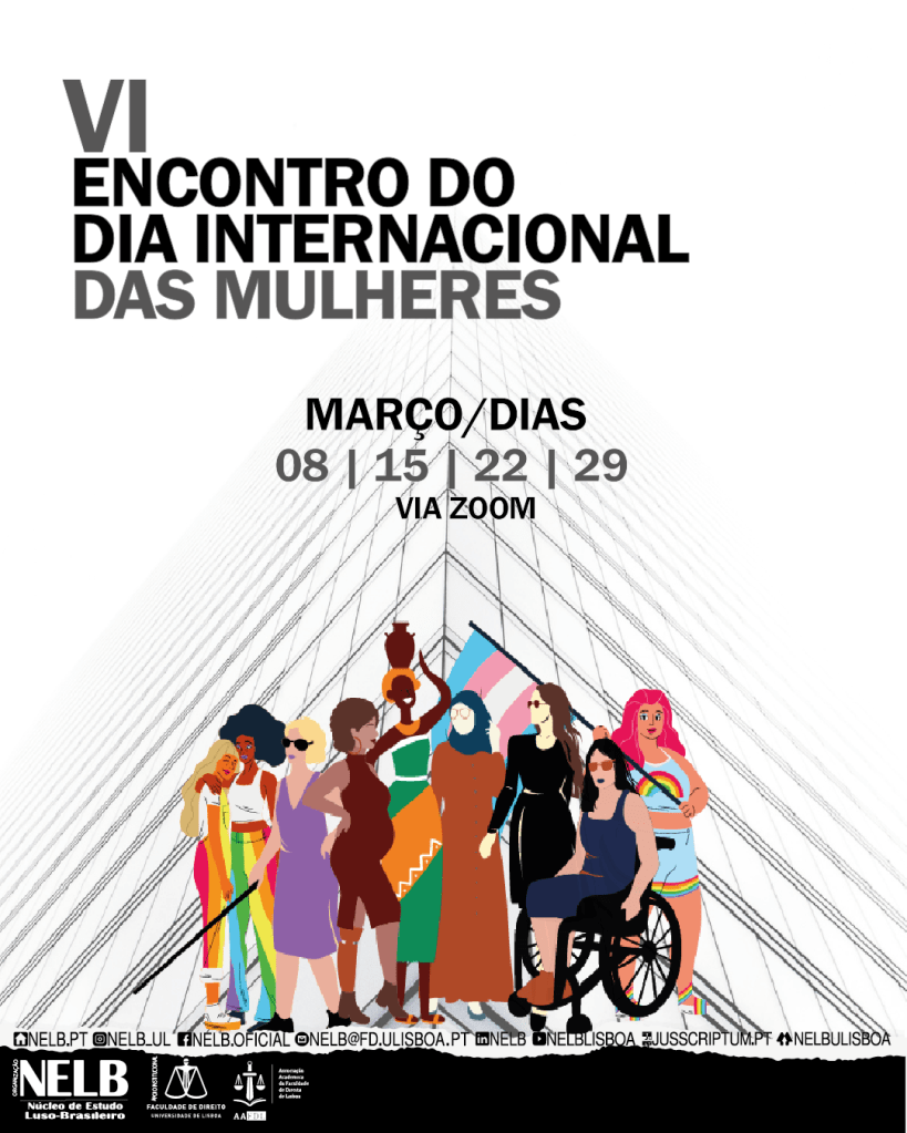 No dia 8 de março, o NELB – Núcleo de Estudantes Luso-Brasileiros – realizará o primeiro Painel do evento “VI Encontro do dia Internacional da Mulher”, via zoom. Este Painel, dedicado às Transformações do Século XXI ocorrerá entre 18:30h e 21:30h de Lisboa, 15:30h e 18:30h de Brasília.
