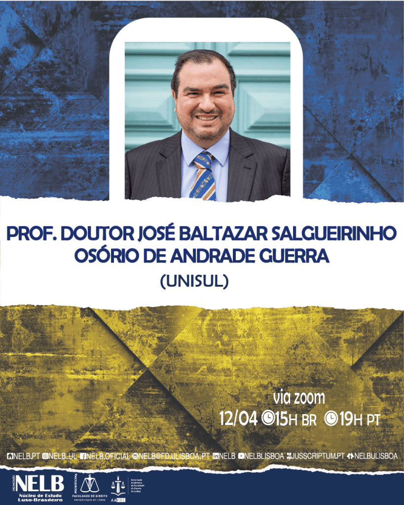 O evento contará com as ilustres presenças do Prof. Doutor José Baltazar Salgueirinho Osório de Andrade Guerra (Univ. do Sul de Santa Catarina), do Prof. Doutor António Paulo Duarte (IDN/FDL) e do Prof. Doutor Henry Iure Paiva (UFPB), a Mediação será feita pelo Dr. Filipe Novaes (Mestrando FDL)