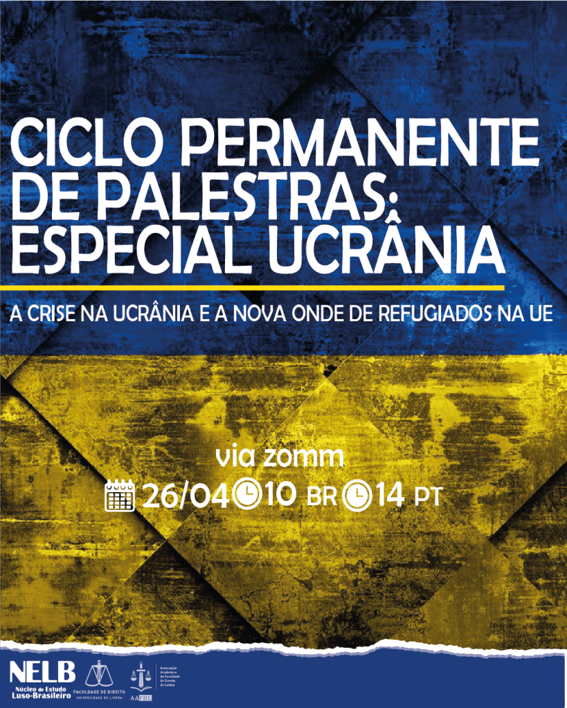 No dia 26 de abril de 2022, o NELB – Núcleo de Estudo Luso-Brasileiro realizará o segundo CPP- Ciclo Permanente de Palestras, edição especial sobre a crise na Ucrânia, tendo por tema a “A crise na Ucrânia e a nova onda de refugiados na UE”