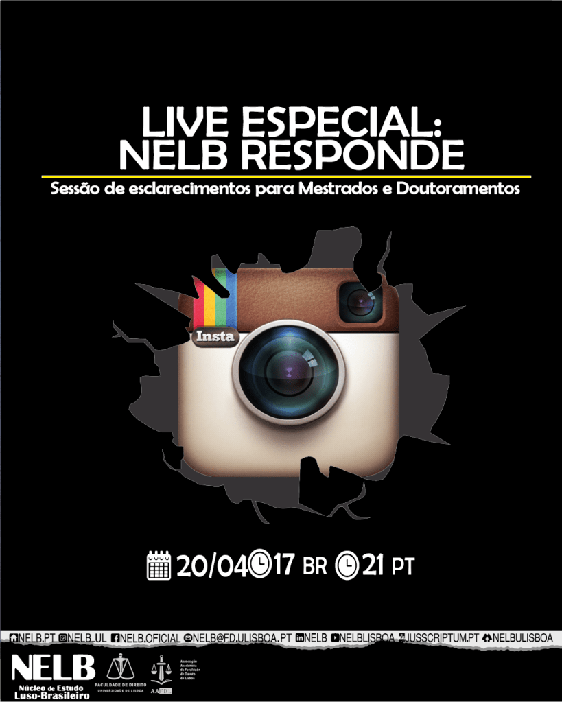 No dia 19 de abril de 2022, será realizado, via Instagram, mais uma Live especial NELB Responde, que consistirá em uma Sessão de esclarecimentos para Mestrados e Doutoramentos