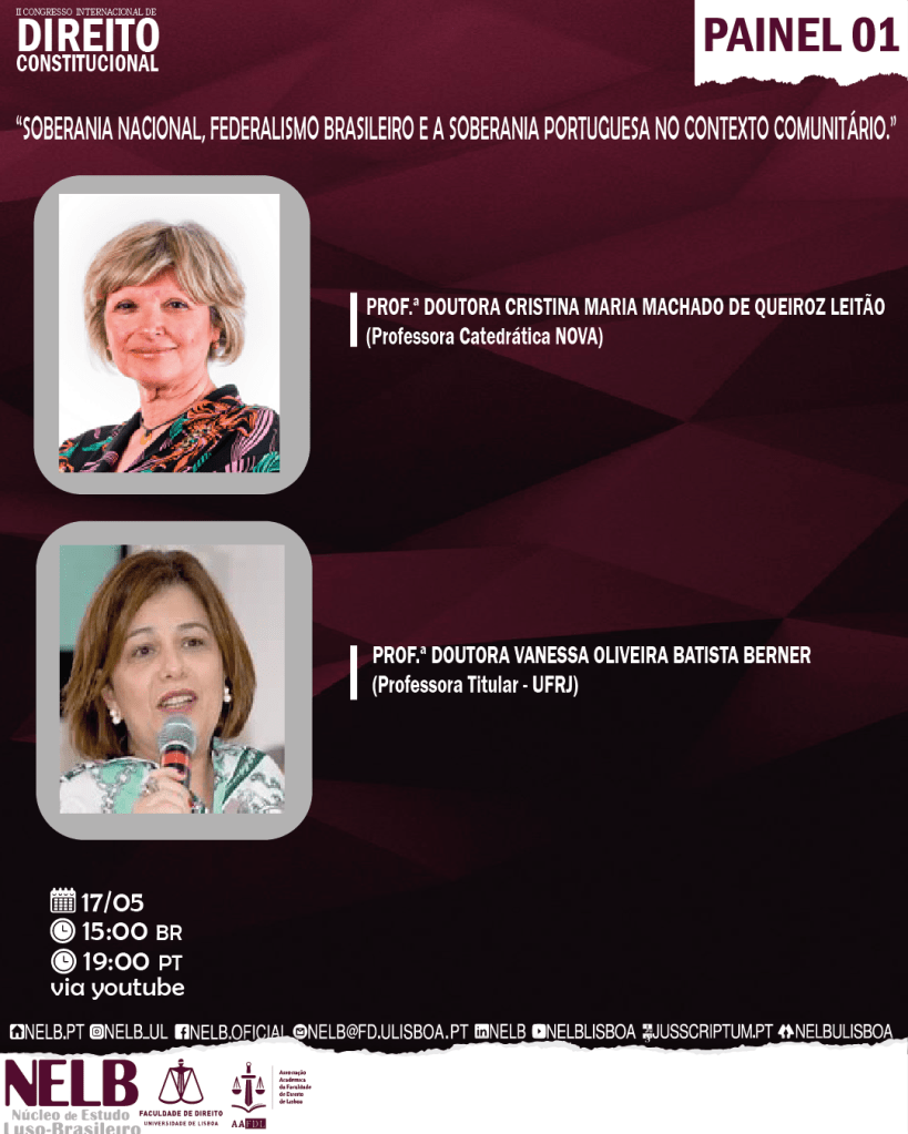 15h BR | 19h PT — Painel 1: “Soberania nacional, federalismo brasileiro e a soberania Portuguesa no contexto comunitário.”
