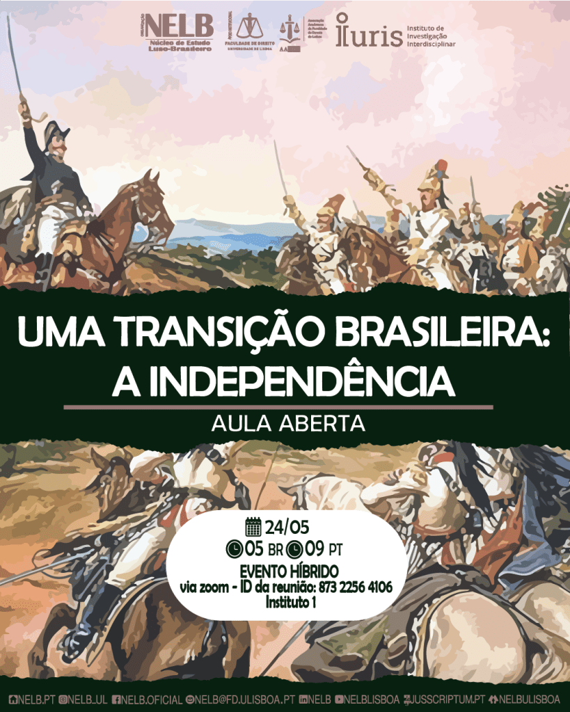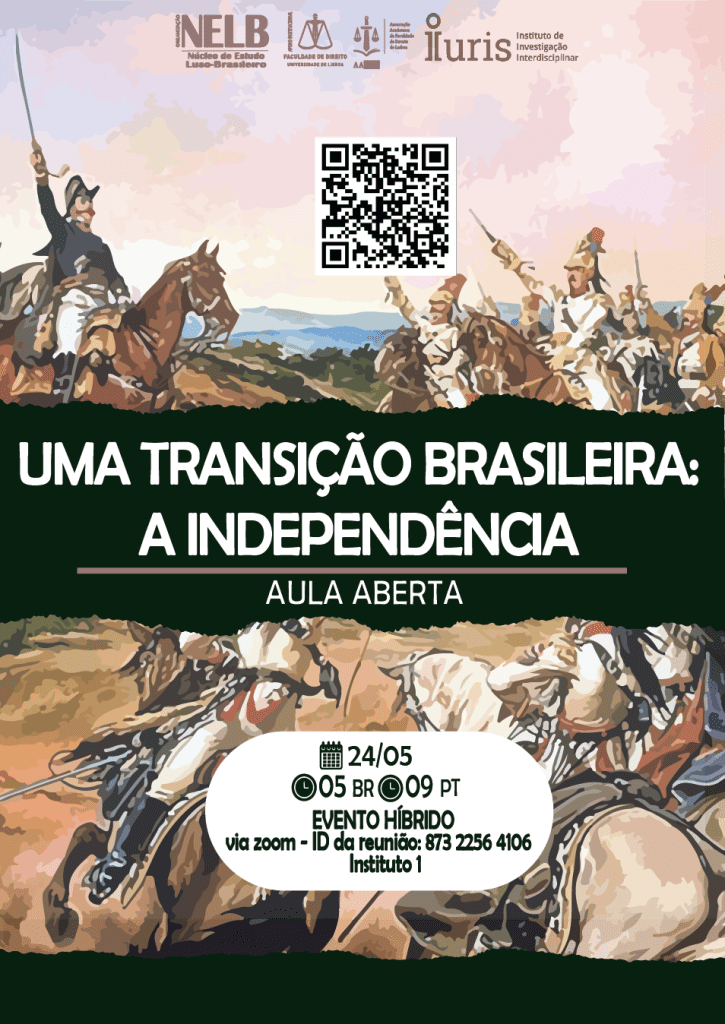 No dia 24 de maio de 2022, o NELB – Núcleo de Estudo Luso-Brasileiro e o IURIS-ULisboa – Instituto de Investigação Interdisciplinar da Universidade de Lisboa irão realizar uma aula aberta, tendo por tema a “Uma transição brasileira – a Independência.”