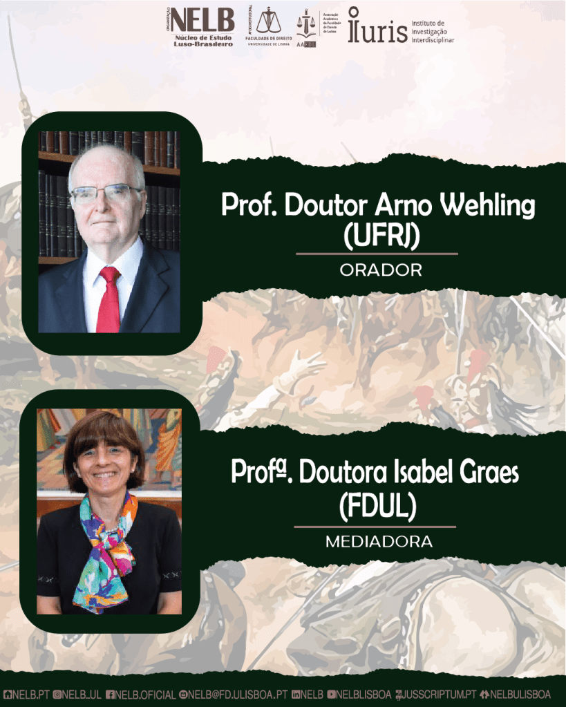 O evento contará com as ilustres presenças do Prof. Doutor Arno Wehling (UFRJ), além da mediação da Profª. Doutora Isabel Graes (FDUL).