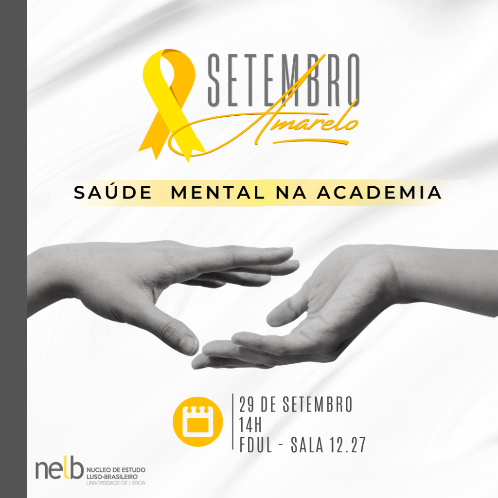 No dia 29 de setembro de 2021, o NELB – Núcleo de Estudo Luso-Brasileiro da Faculdade de Direito da Universidade de Lisboa, em parceria com a AAFDL- Associação Académica da Faculdade de Direito da Universidade de Lisboa, AAUL-Associação Académica da Universidade de Lisboa, HeforShe ULisboa, NEA-Núcleo de Estudantes Africanos da Faculdade de Direito da Universidade de Lisboa e NEBR-Núcleo de Estudantes Brasileiros do ISCSP, realizará o II Seminário Setembro Amarelo: Saúde Mental na Academia.