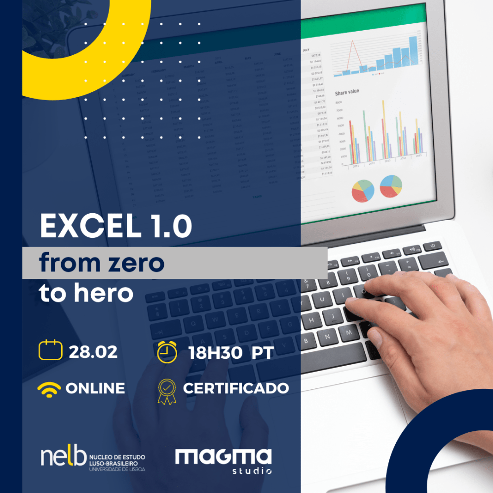 Aqui abordaremos os básicos do Excel para que consigas navegar de forma independente na ferramenta. Para além da visualização de dados, neste workshop vais saber como utilizar as funções mais elementares (soma, média, se, procv, entre outras).