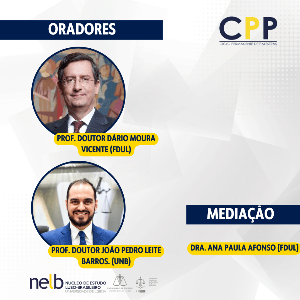 O evento contará com as ilustres presenças do Prof. Doutor Dário Moura Vicente (Faculdade de Direito da Universidade de Lisboa), e do Prof. Doutor João Pedro Leite Barros (Universidade de Brasília)