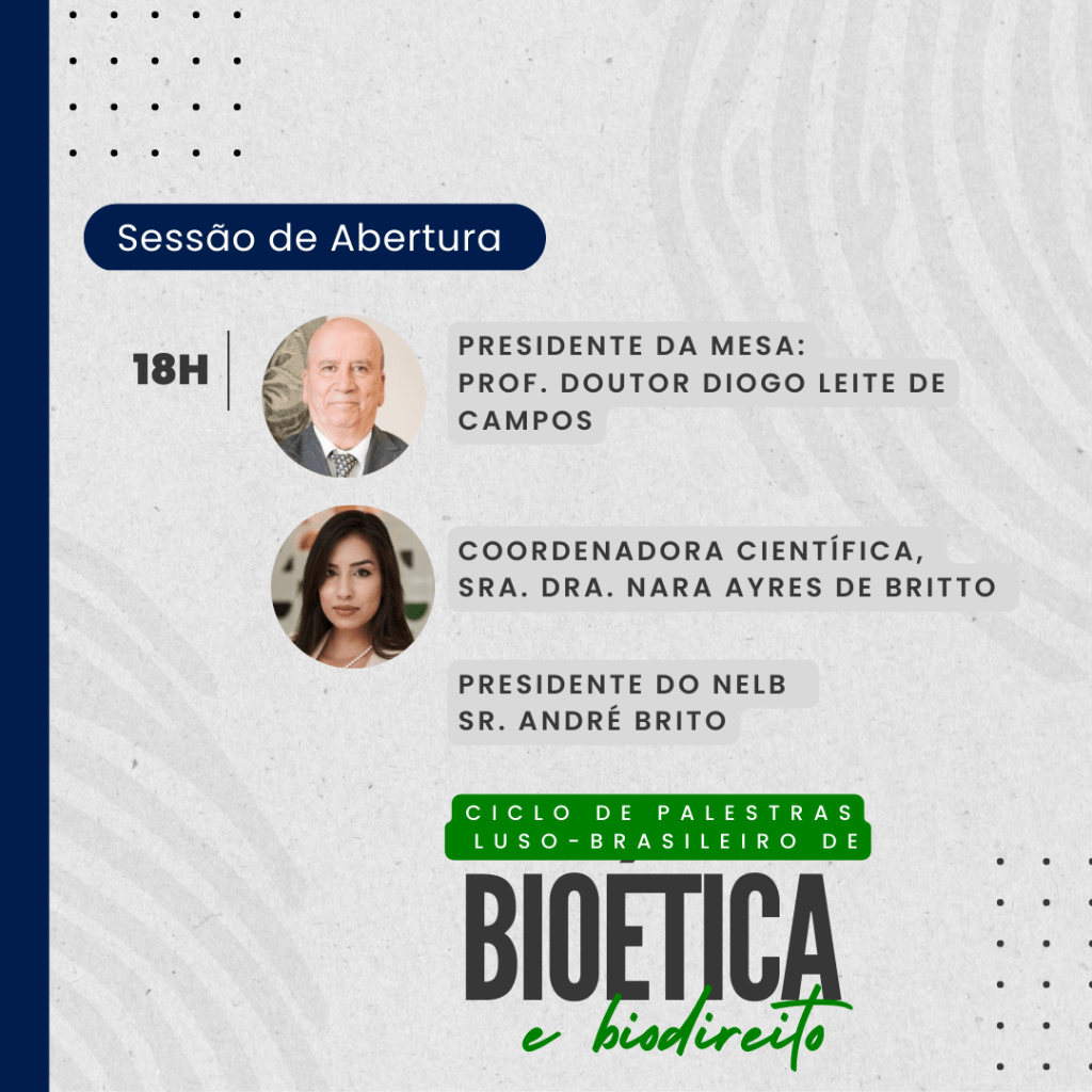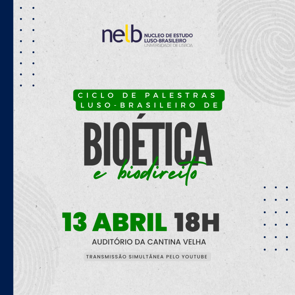 No dia 13 de abril de 2023, 14h00 BR | 18h00 PT o NELB realizará o evento: Ciclo de Palestras Luso-Brasileiro de Bioética e Biodireito.