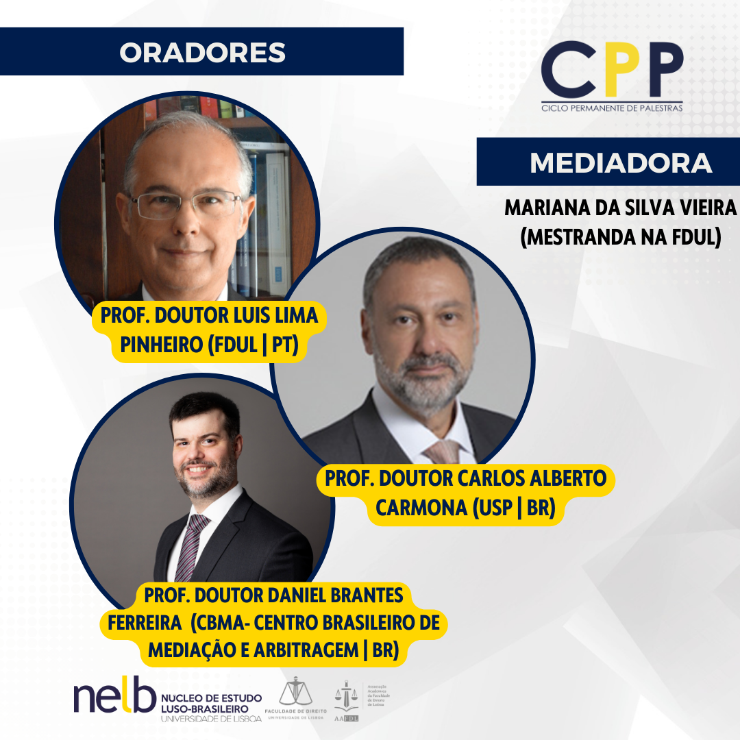 O evento acontecerá via Youtube, a partir das 15:30h (Brasília)/ 19:30h (Lisboa) e contará com as ilustres presenças do Prof. Doutor Luis Lima Pinheiro (Faculdade de Direito da Universidade de Lisboa), do Professor Doutor Carlos Alberto Carmona (Universidade de São Paulo) e do Professor Doutor Daniel Brantes Ferreira (CBMA- Centro Brasileiro de Mediação e Arbitragem | BR)