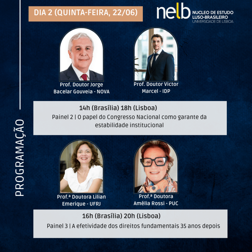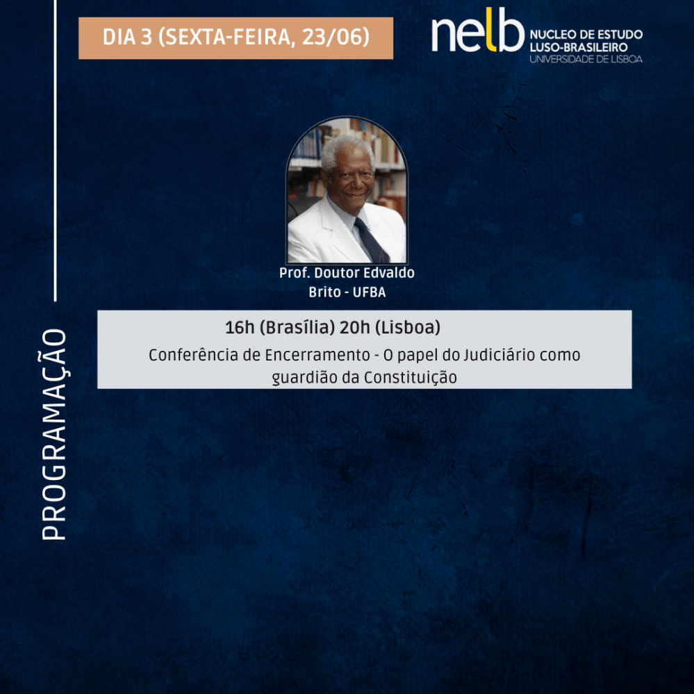 Nos dias 21, 22 e 23 de junho de 2023, o NELB — Núcleo de Estudo Luso-Brasileiro, promoverá o III Congresso Internacional de Direito Constitucional, com o tema: “A Constituição Federal de 1988 nos seus 35 anos: avanços e recuos”.