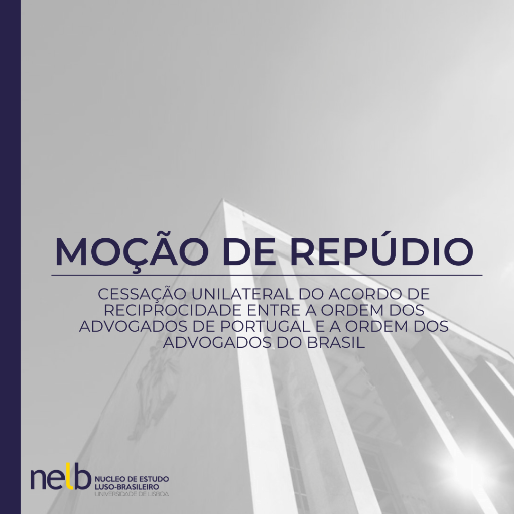Considerando a decisão do Conselho Geral da Ordem dos Advogados Portugueses em fazer cessar o regime de reciprocidade de inscrição de Advogados com a Ordem dos Advogados Brasileiros do dia 4 de julho de 2023, o Núcleo de Estudo Luso-Brasileiro da Faculdade de Direito da Universidade de Lisboa deliberou emitir uma moção de repúdio, que pode ser acessada abaixo. Mais se informa que o NELB continuará trabalhando para contribuir para uma solução que atenda a preocupação dos seus Associados.