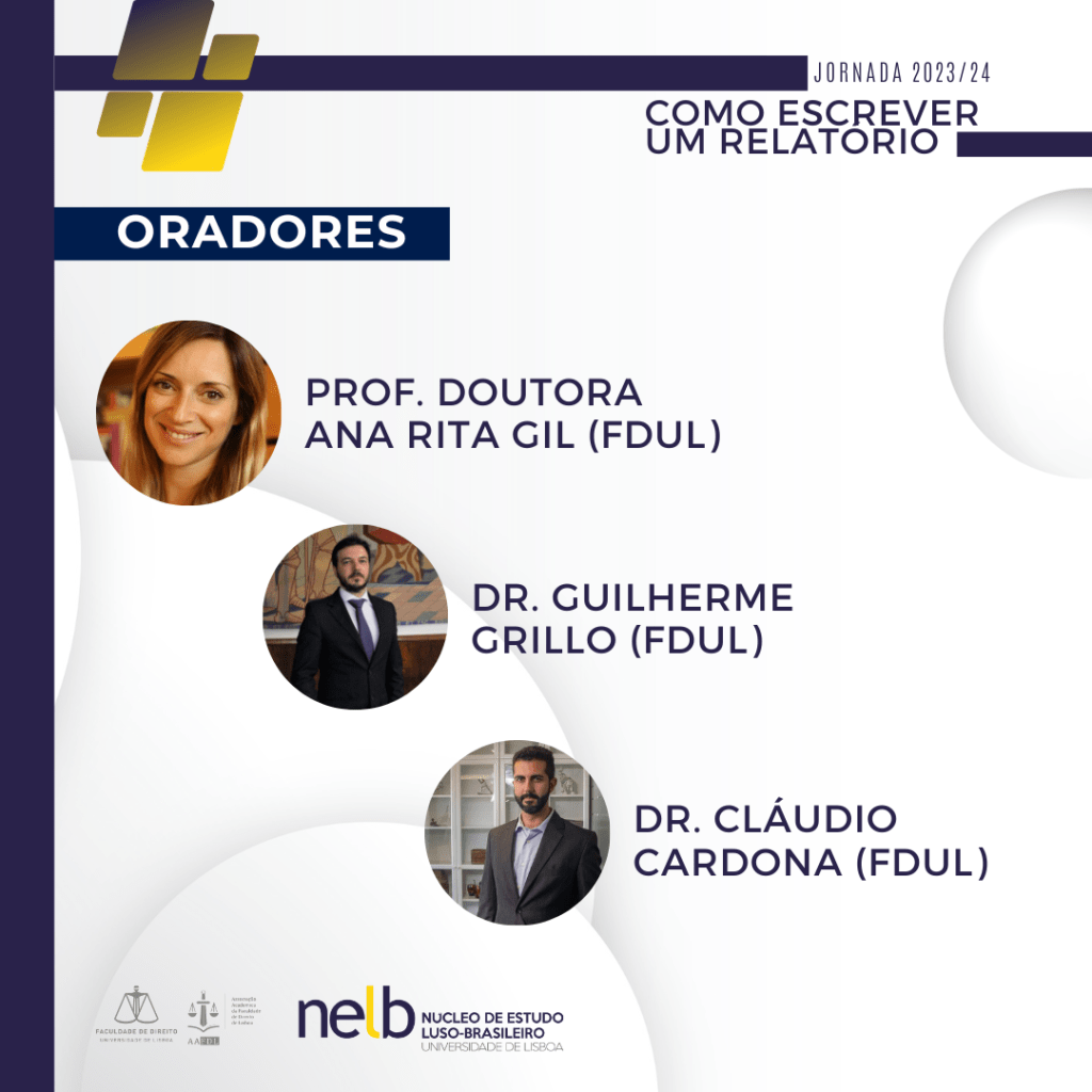 No dia 18 de outubro de 2023, será realizada a quinta edição do Como Escrever um Relatório com a conferência de abertura tendo por tema: “Metodologia jurídica em Portugal, o estilo da escrita da (R)FDUL e ética na pesquisa, plágio e auto-plágio“.