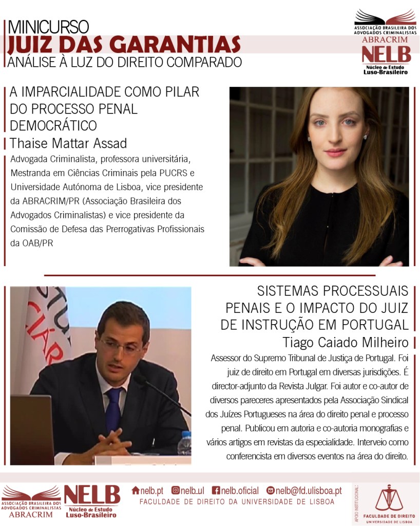 O curso é uma parceria do NELB (Núcleo de Estudo Luso-Brasileiro da Faculdade de Direito da Universidade de Lisboa) com a ABRACRIM (Associação Brasileira dos Advogados Criminalistas)